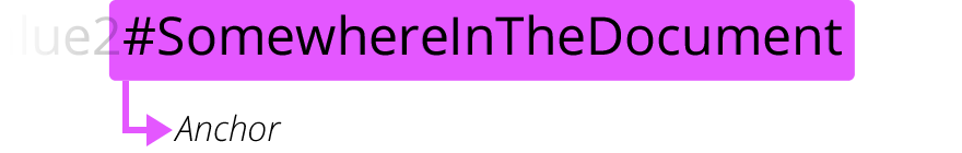 #somewhereInTheDocument는 리소스 자체의 다른 부분에 대한 anchor이다. Anchor는 리소스 내부의 일종의 "bookmark"를 나타내며 브라우저가 해당 "bookmark" 위치에 있는 내용을 표시하도록 지시한다. 예를 들어, HTML 문서에서 브라우저는 그 anchor가 정의된 지점으로 스크롤하고, 비디오 또는 오디오 문서에서 브라우저는 anchor가 나타내는 시간으로 이동한다. Fragment identifier(단편 식별자, 조각 식별자)라고도 하는 #의 뒤 부분은 request에 의해 서버로 전송되지 않는다는 점은 주목해 볼 만한 가치가 있다.