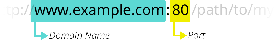 - 포트는 웹 서버의 리소스에 접근하는 데 사용되는 기술적 "gate"를 나타낸다. 웹 서버가 표준 포트(HTTP의 경우 80, HTTPS의 경우 443)를 사용하여 리소스에 대한 접근을 허용하는 경우 일반적으로 생략된다. 그렇지 않으면 필수이다.