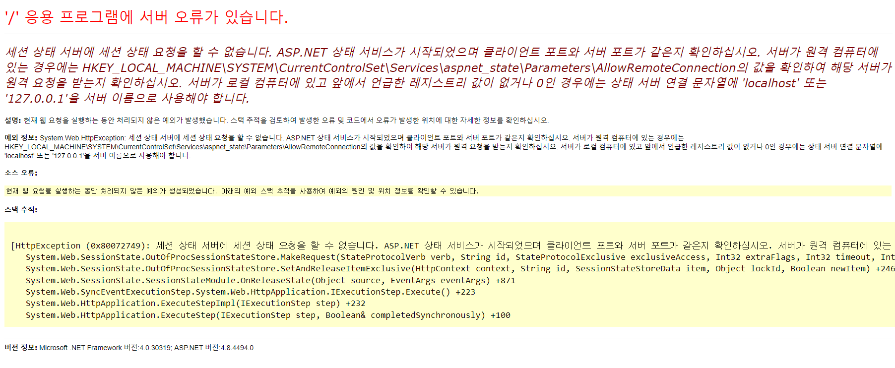 제어판 > 서비스 > ASP.NET State Service > 서비스 실행