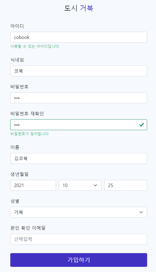 <button class="btn btn-primary btn-lg" type="submit">가입하기</button>