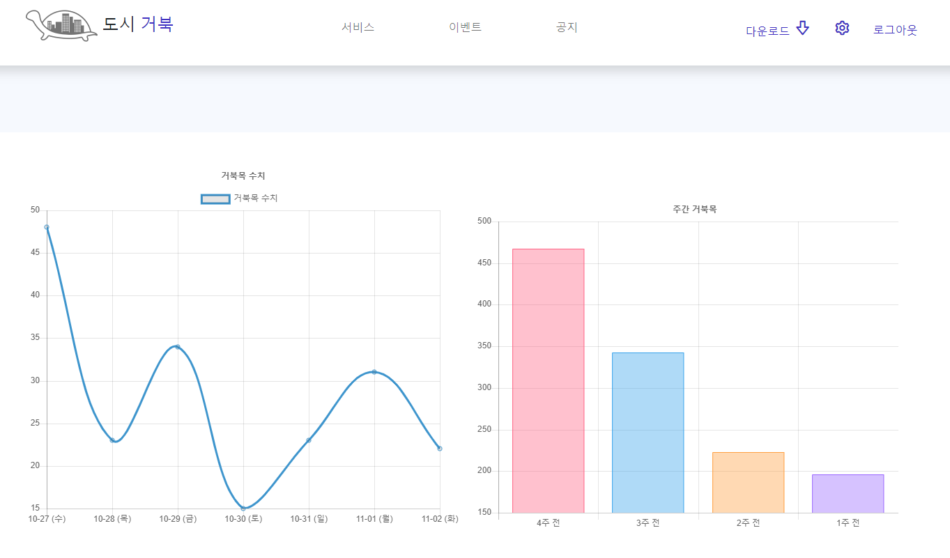 페이지가 로드될 때 getSumGraph 함수가 시작될 수 있도록 설정해줬습니다. getSumGraph함수가 실행되면 ajax통신이 실행됩니다. countSum.do에 요청을 보내면콜백 함수를 통해 json방식의 데이터를 받습니다. 미리 만들어둔 sumList 리스트에 받아온 데이터 값을 넣어줬습니다. data.data에 받아온 값을 넣어주면 차트가 그려집니다.