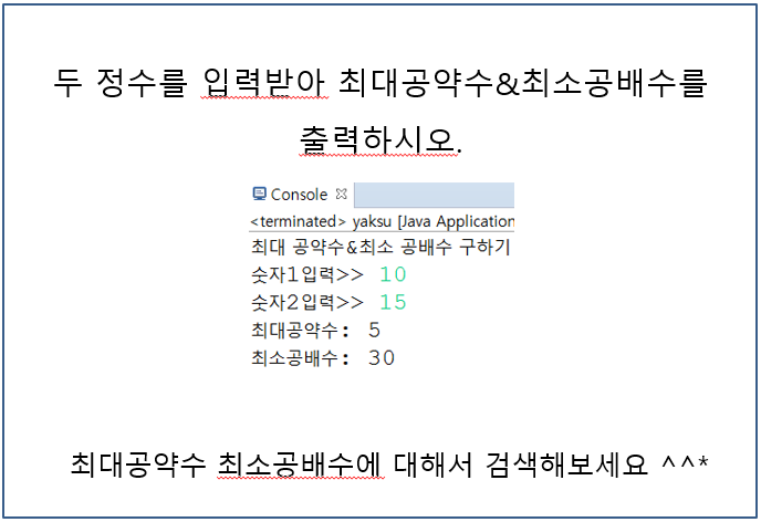 System.out.println("최대 공약수 & 최소 공배수 구하기");