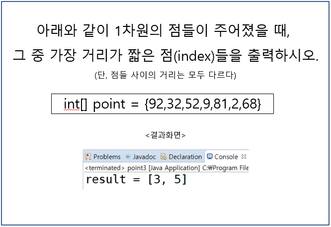 System.out.println("result = [" + a +", "+ b + "]"); // 최솟값인 두 점