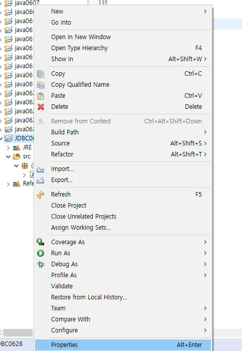 먼저 로드를 원하는 프로젝트에서 properties를 들어갑니다.