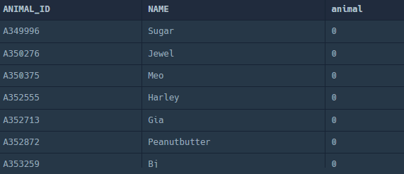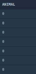 select 0 as ANIMAL